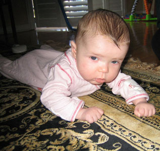 For the first part of her life, much to the delight of both of us, she was a happy healthy baby developing normally for her age. At 3 1/2 months my wife noticed some strange movements. Ryanne's eyes would scramble like something was passing in front of her face. After a couple more days there were more movements. She would throw her arms out sideways and lift her head a bit. She would do this multiple times in a row.